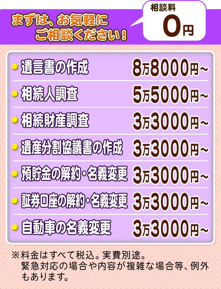 相続手続きはお任せください