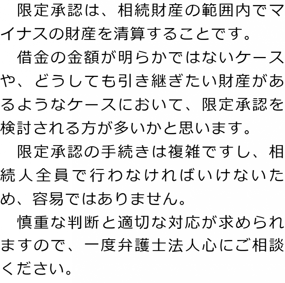 トップ業務内容限定承認 階層構造▼ 業務内容(目次) 限定承認 業務内容(目次)業務内容トップ行政書士法人心の業務内容遺言遺産整理相続人調査相続財産調査遺産分割協議書の作成預金・貯金の解約・名義変更証券口座の解約・名義変更自動車の名義変更心グループのその他の業務内容家族信託・民事信託節税対策事業承継遺言の検認相続放棄限定承認遺産分割遺留分侵害額請求相続登記相続税申告相続税調査 受付時間 平日 9時~21時、土日祝 9時~18時 夜間・土日祝の相談も対応します (要予約) 所在地 〒305-0032 茨城県つくば市竹園1-6-1つくばビルディング5F 0120-2403-39 お問合せ・アクセス・地図